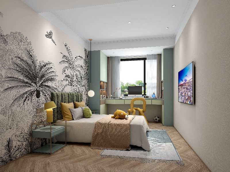 装饰上,以山水为元素展开,所有的家具,柜体,地毯,画饰,甚至是台灯都是设计师深化定制的。电视背景墙的山水出自建筑大师贝聿铭的苏州博物馆一角。