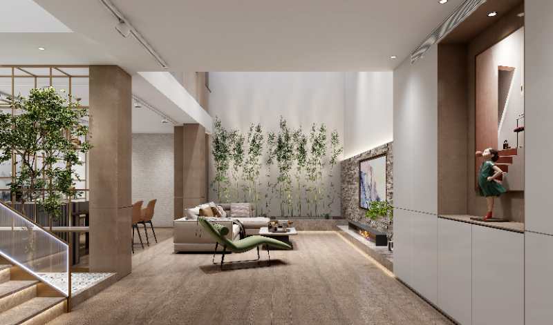 根据客户的需求,我们配备了全屋智能化,即使客户在异地也可远程控制和观察家中的一切。全屋都配备了地暖新风,保证了室内的空气质量和湿度。除此之外,还配备了现代化的厨房和卫浴。